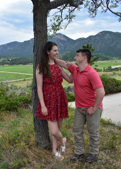 I had her sit on a bench here and him kneel down with their noses touching. I held a few flowers in front of the lens blocking partly where he stood to hide him bending down.