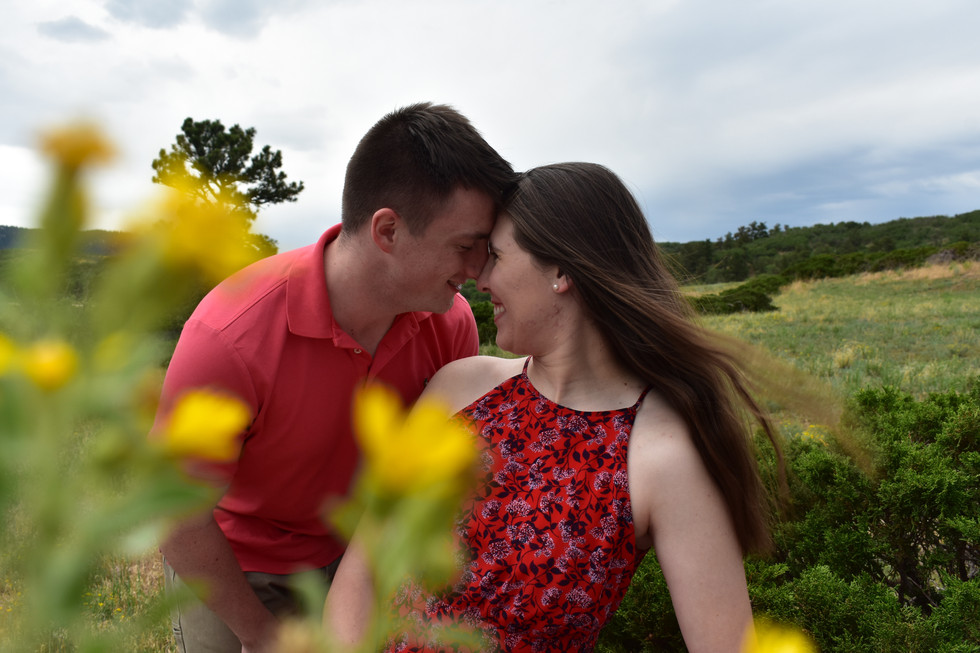 I realize this pose won't work for every couple, usually the younger ones. Most of the time they will hate the idea until they see the results. She said she was happy we did this idea. I didn't get to pick this location but this works best where there is soft and fuller grass as well as a field of flowers! Their heads should be touching and their legs going opposite directions. Hover over them at a slight angle so their bodies go through opposite sides of the photo.